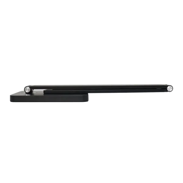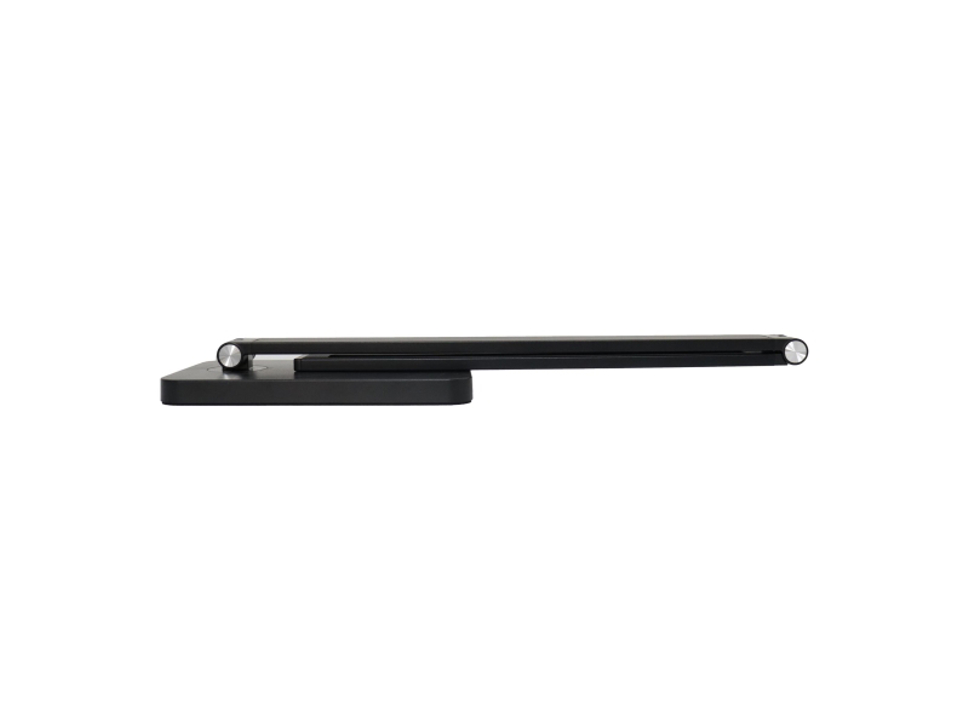 Moderní LED stolní lampa s prémiovým designem z broušeného hliníku nabízí nejen elegantní vzhled, ale i širokou funkcionalitu. Díky dvěma pohyblivým kloubům si snadno nastavíte optimální úhel světla – ať už pracujete u počítače, studujete nebo relaxujete u knihy. Lampa je vybavena integrovaným LED modulem s výkonem 10 W, který poskytuje světelný tok 500 lumenů – to odpovídá klasické 35W žárovce. Barevná teplota je nastavitelná v pěti krocích (3000 / 4000 / 4500 / 5000 / 6000 K), takže si můžete volit mezi teplým, neutrálním i studeným bílým světlem přesně podle potřeby. Index podání barev (CRI) 80 Ra zajišťuje přirozené zobrazení barev při každodenním použití. Jednou z klíčových funkcí je bezdrátové nabíjení (Qi) – stačí položit smartphone na základnu lampy a nabíjení začne automaticky. Dále jsou k dispozici USB a USB-C porty pro nabíjení dalších zařízení. Lampa se ovládá pomocí dotykového panelu, který umožňuje plynulé přepínání mezi jednotlivými režimy světla i nastavení jasu. Stabilní základna je opatřena protiskluzovým povrchem, což zajišťuje bezpečné umístění na jakémkoli povrchu. Adaptér i napájecí kabel je součástí balení. Napětí napájení je 12V/2A. Lampa je vybavena vestavěnou LED technologií – není potřeba dokupovat žárovku. Lampa obsahuje integrovanou bezdrátovou nabíječku kompatibilní s Qi zařízeními. Možnost nastavení intenzity světla (stmívání). Lampa je vybavena USB portem – snadné nabíjení telefonu nebo jiného zařízení.