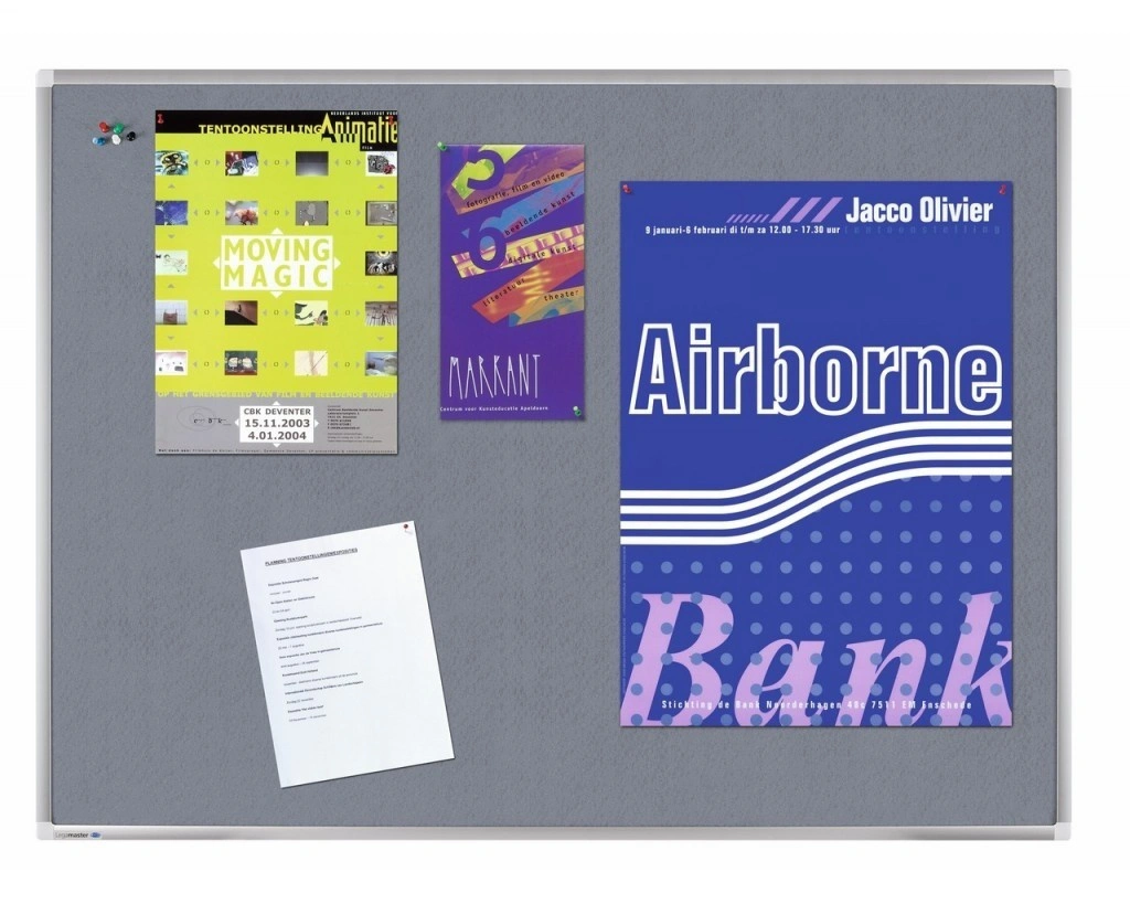 Textilní nástěnka má odolný povrch, nejsou v ní vidět vpichy po špendlících a je umístěna v masivním hliníkovém rámu s plastovými rožky.