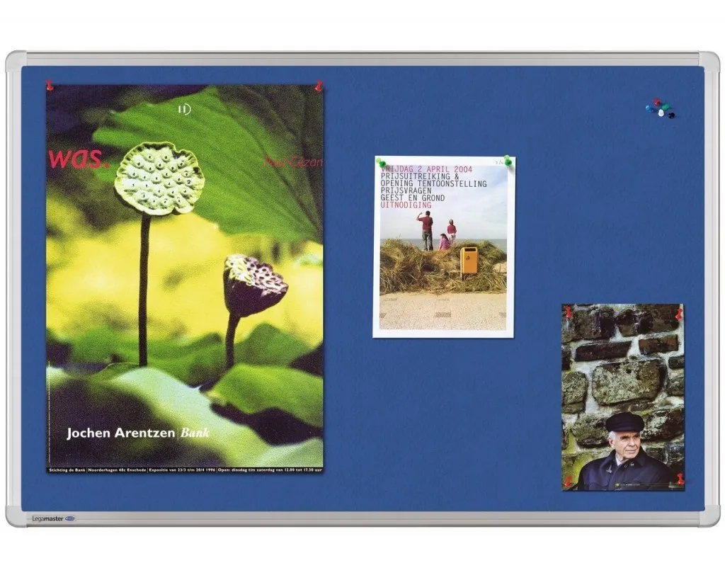 Textilní nástěnka má odolný povrch, nejsou v ní vidět vpichy po špendlících a je umístěna v masivním hliníkovém rámu s plastovými rožky.
