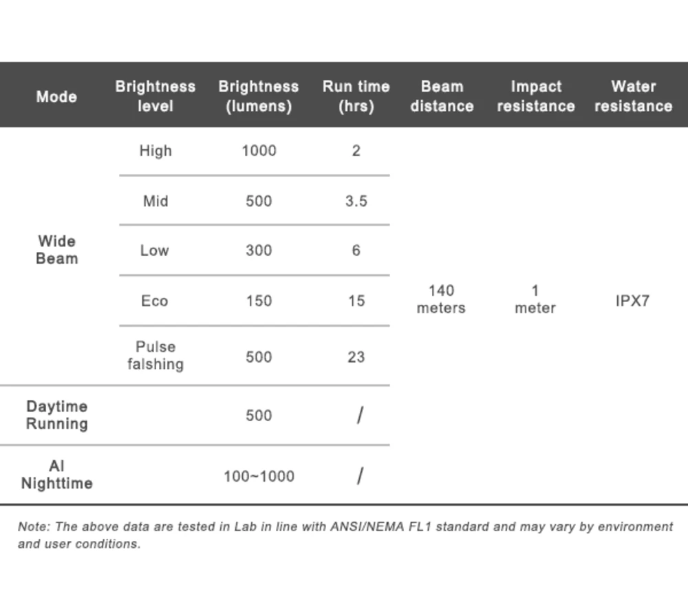 | Model | Svítivost | AI režim | Denní svícení | Dálkové ovládání | Powerbanka |