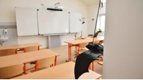 Realizace nové kmenové učebny na ZŠ Rosice u Brna. V rámci kompletní rekonstrukce učebny byla instalována nová dotyková interaktivní tabule Legamaster eBoard Touch 87" s křídly umístěná na zvedacím systému.