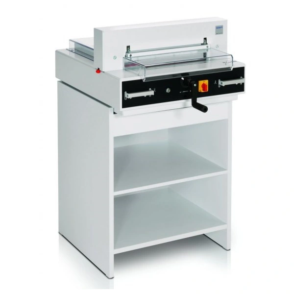 - Pohodlí: Řezačka EBA 4350 je ergonomicky navržena a snadno se používá. Díky automatickému lisu a vřetenovému posuvu dorazu je práce s ní rychlá a bez námahy.