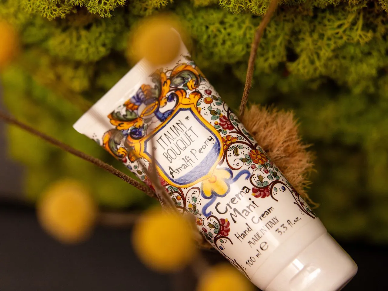 Krém na ruce úžasnou vůní AMALFI PEONY. Rychle se vstřebává a nezanechává pocit mastných rukou.
