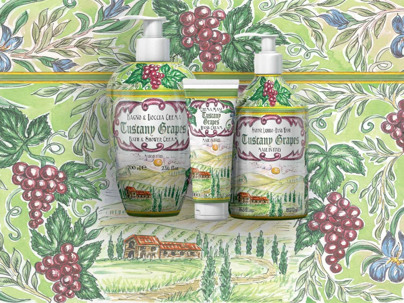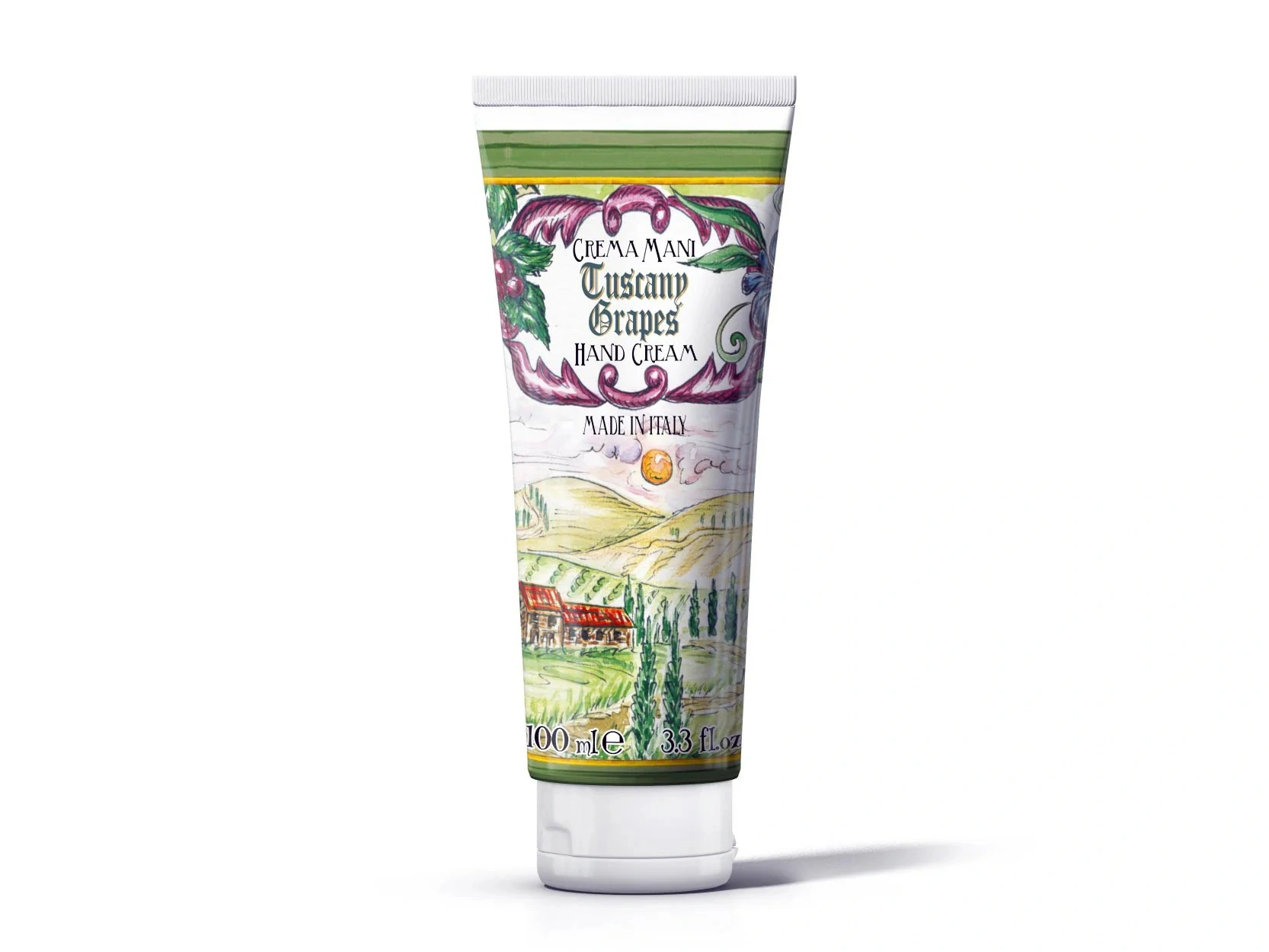 Krém na ruce úžasnou vůní TUSCANY GRAPES. Rychle se vstřebává a nezanechává pocit mastných rukou.