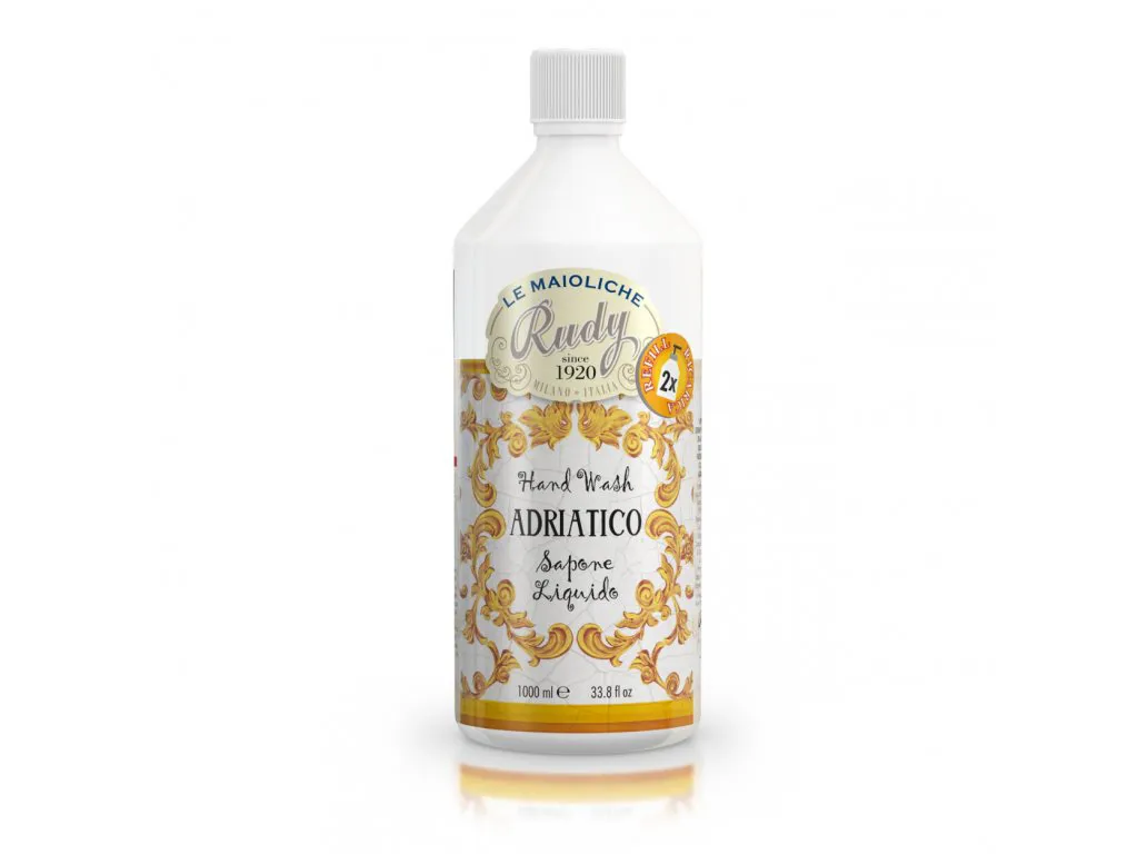 Náhradní náplň pro dávkovač mýdla na ruce s vůní ADRIATICO. S náhradní náplní doplníte dávkovač ještě dvakrát.