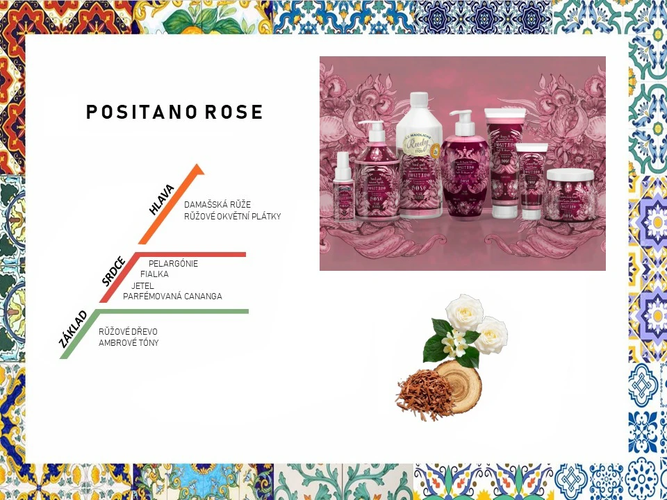 POSITANO ROSE je úžasná vůně rozkvetlých růží. Mýdlo na ruce můžete sladit s krémem na ruce a hygienickým sprejem na ruce ve stejné vůni.