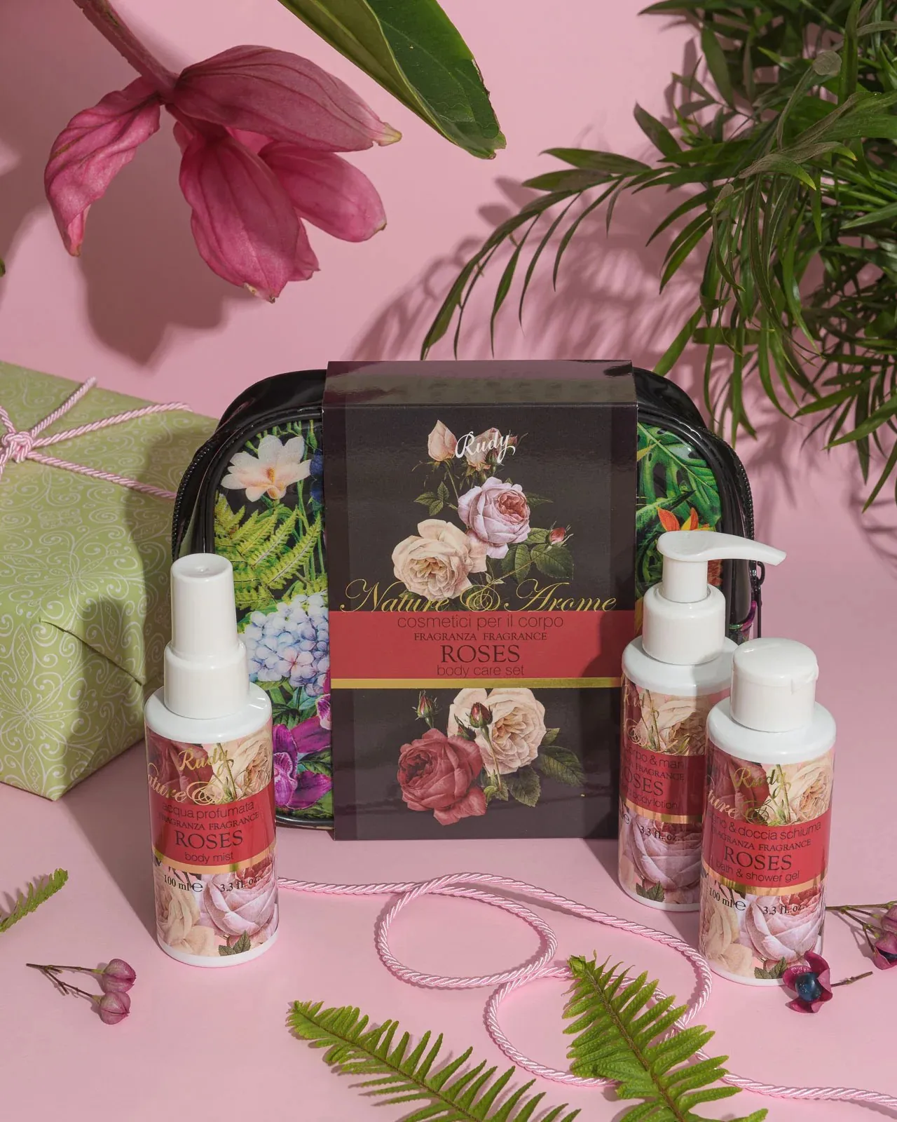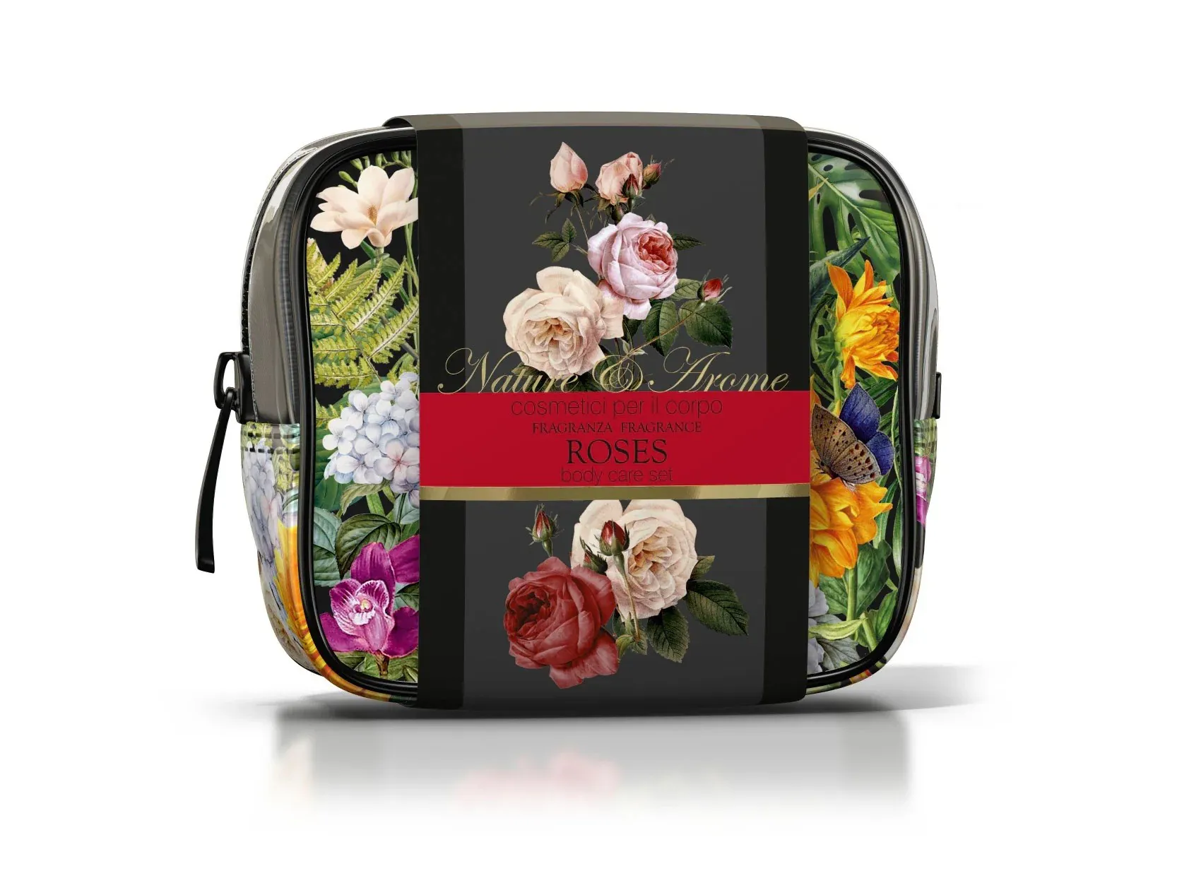 Užitečný dárek v podobě elegantní tašky se vším, co je potřeba na cesty abyste se v každé chvíli cítila čistá a svěží. V tašce najdete v praktických 100 ml lahvičkách sprchový gel, tělový krém a parfémovaný sprej na tělo. To vše s překrásnou květinovou vůní ROSES.