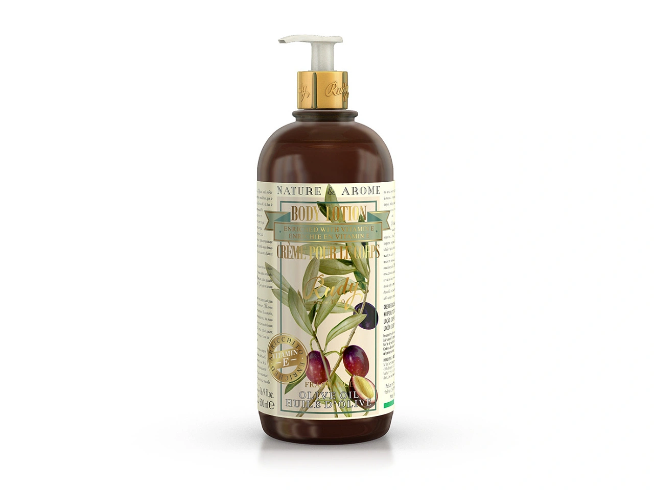Hydratační tělový krém v praktickém balení s dávkovačem, obohacený o vitamín E s příjemnou vůní OLIVE OIL.