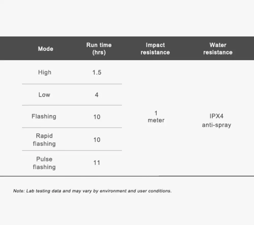 Přední světlo CR600 využívá antireflexní čočku s paprskem tvaru T, která poskytuje výborné blízké záplavové světlo i silný bodový paprsek do dálky. Je vybaveno vysoce intenzivní bílou LED diodou s životností až 50 000 hodin a disponuje nabíjecí lithium-iontovou baterií s kapacitou 1600 mAh.