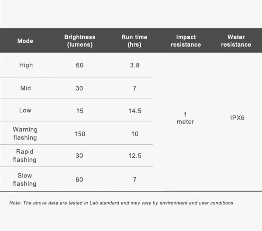 Přední světlo FR150 využívá čtyři sady LED diod typu COB s maximálním výkonem 150 lumenů, což zajišťuje dostatečné osvětlení a výbornou viditelnost i za denního světla. Díky výstražnému záblesku vás ostatní účastníci provozu uvidí až na vzdálenost 650 metrů. Světlo je vybaveno automatickou funkcí zapnutí a vypnutí, úsporným režimem a indikátorem vybité baterie, což z něj dělá ideální světlo pro každodenní použití.
