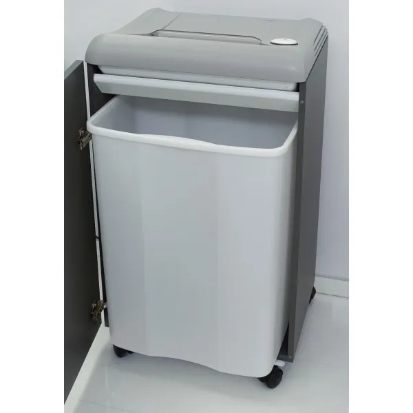 Komfortní skartovač pro intenzivní využití. Výhodou tohoto modelu je odpadní koš o objemu 75 L. Vstupní šířka 260 mm, integrována světelná indikace zátěže stroje. Kapacita skartace až 12 listů 70g/m2 papíru v řezu 2 x 15 mm. SPS - patentované bezpečnostní a ochranné funkce: elektronicky řízená jistící klapka v místě vstupu, automatický zpětný chod při ucpání papírem a následné vypnutí, automatické vypnutí po naplnění odpadní nádoby, elektronická kontrola uzavření dvířek podstavy, dvoustupňové jištění motoru, úsporný režim "ZERO ENERGY" (absolutní vypnutí odběru el.