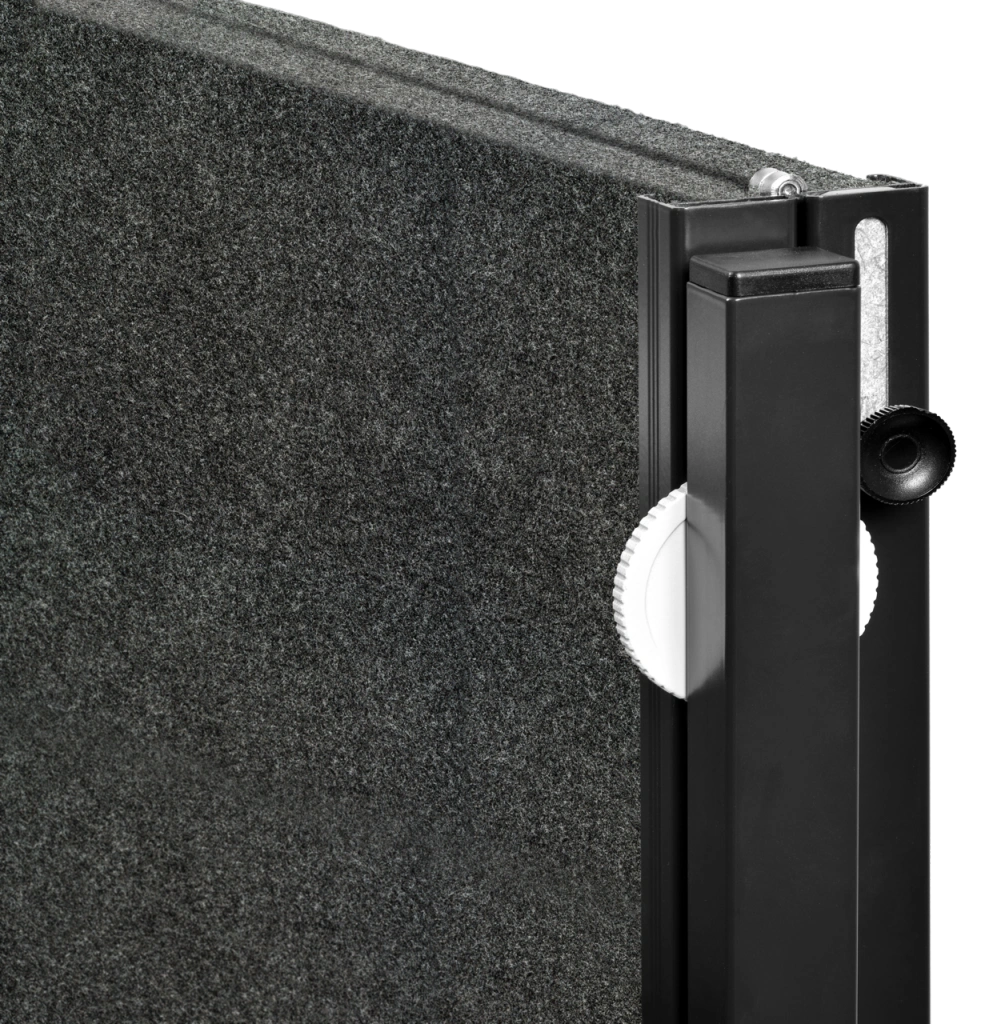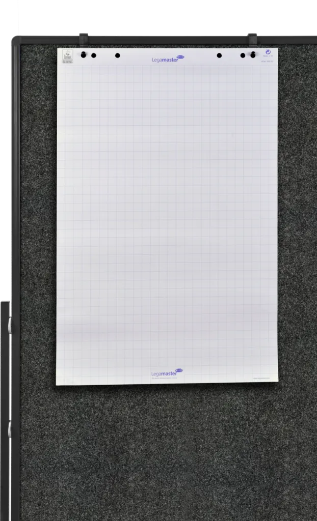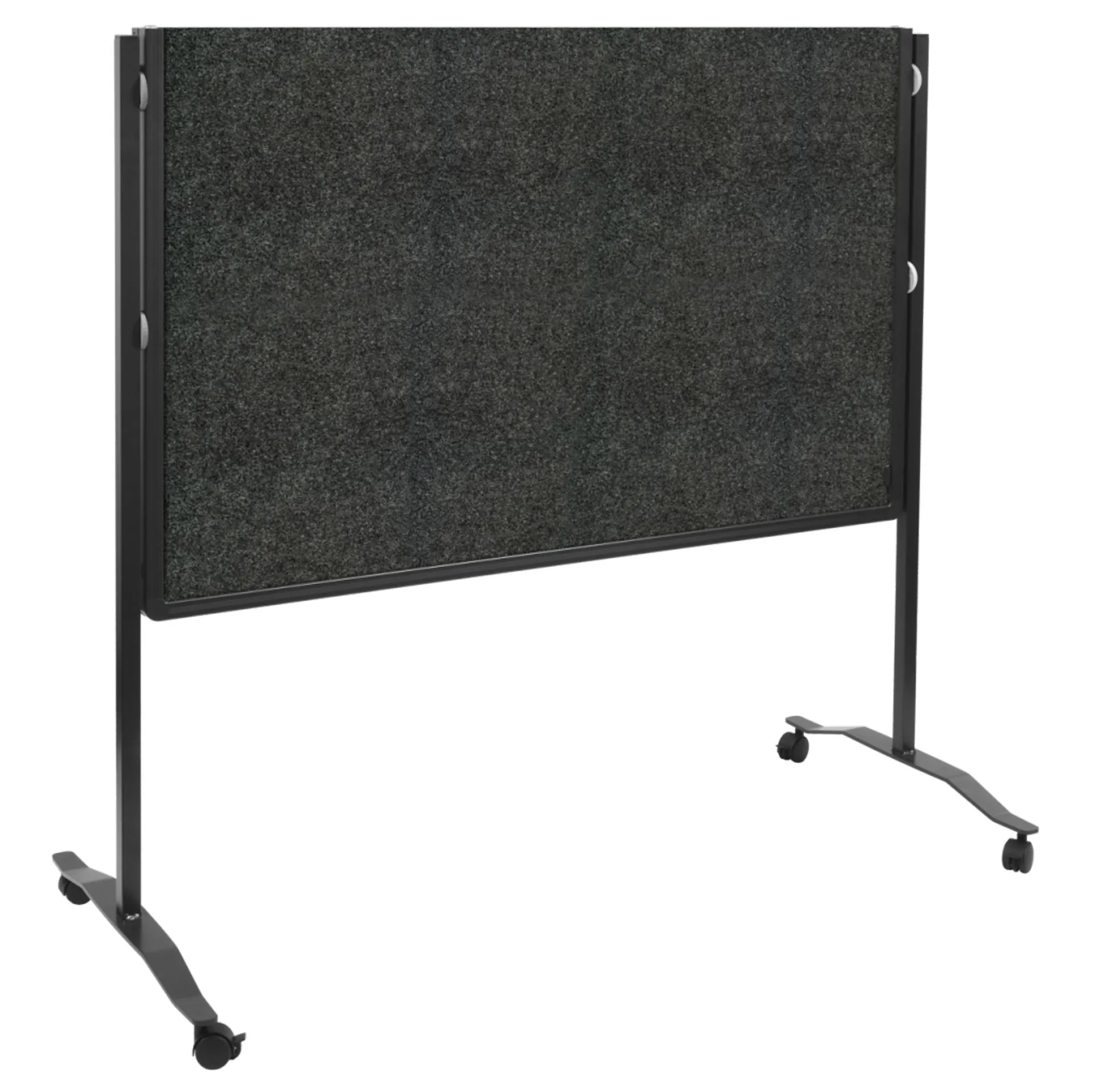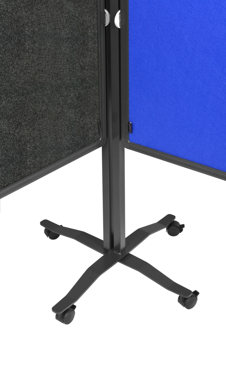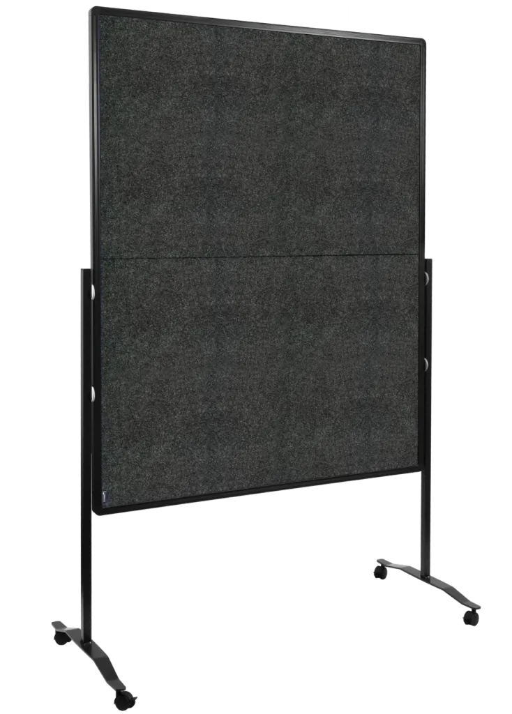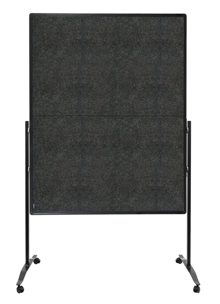 Moderní elegantní oboustranná mobilní skládací moderační tabule / paraván. Ideální pro prezentace, vystavení různýh dokumentů nebo pro efektivní týmovou práci. Povrch tabule je textilní. Dokumenty se na tabuli připevňují pomocí špendlíků.