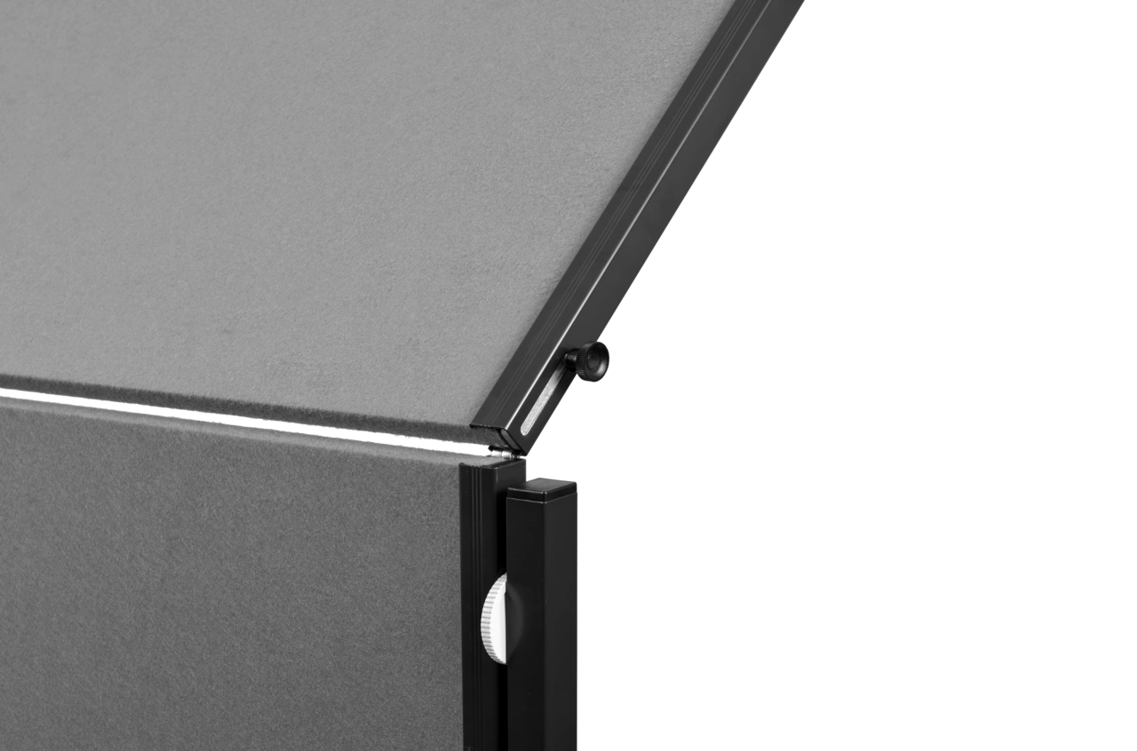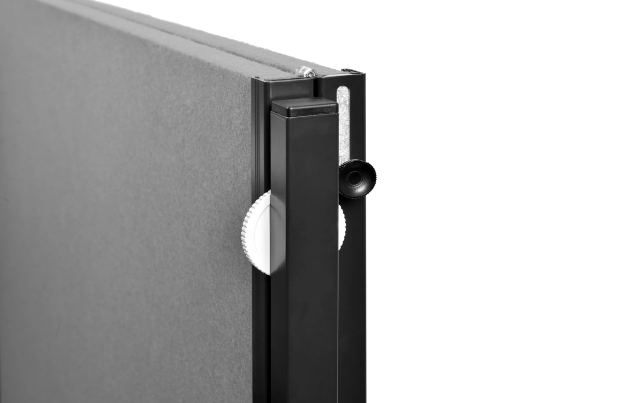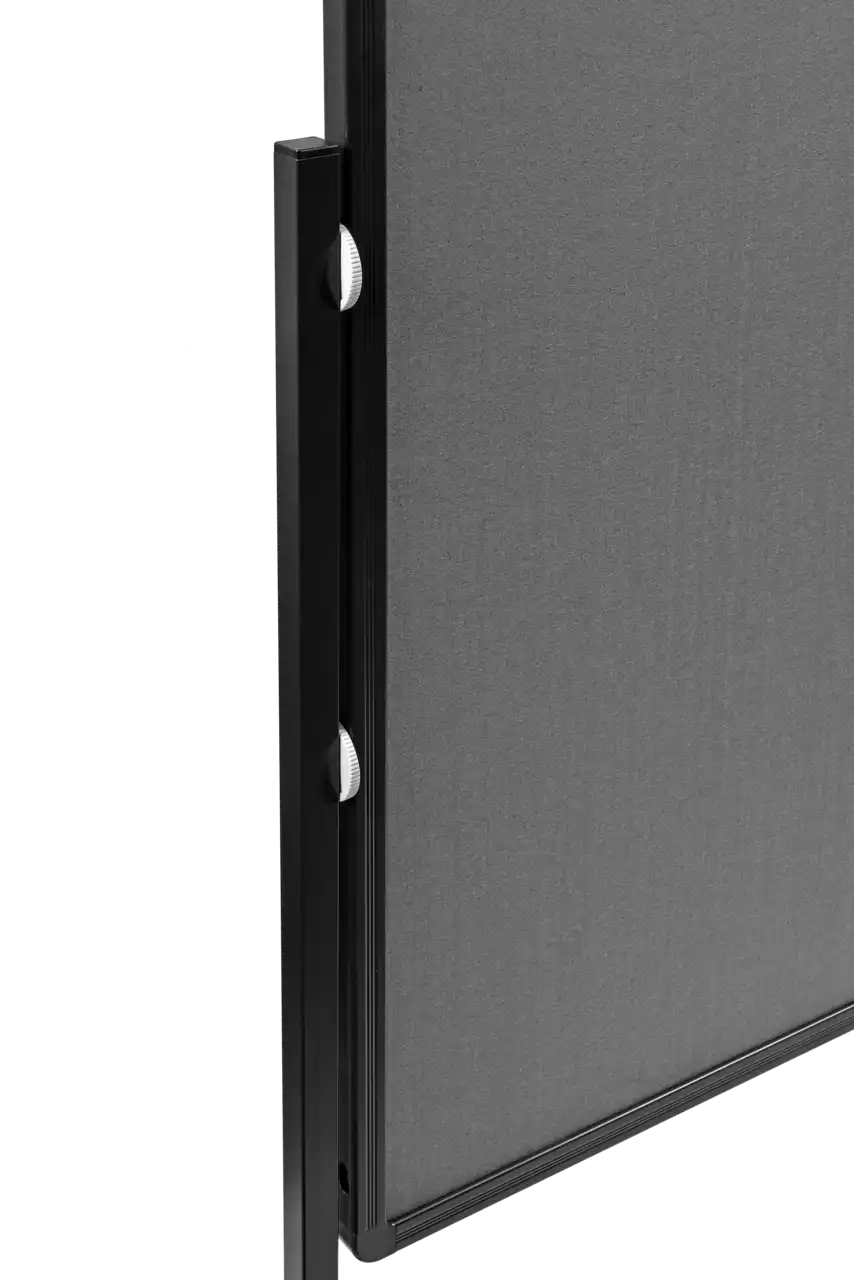 Moderní elegantní oboustranná mobilní skládací moderační tabule / paraván. Ideální pro prezentace, vystavení různýh dokumentů nebo pro efektivní týmovou práci. Povrch tabule je textilní. Dokumenty se na tabuli připevňují pomocí špendlíků.