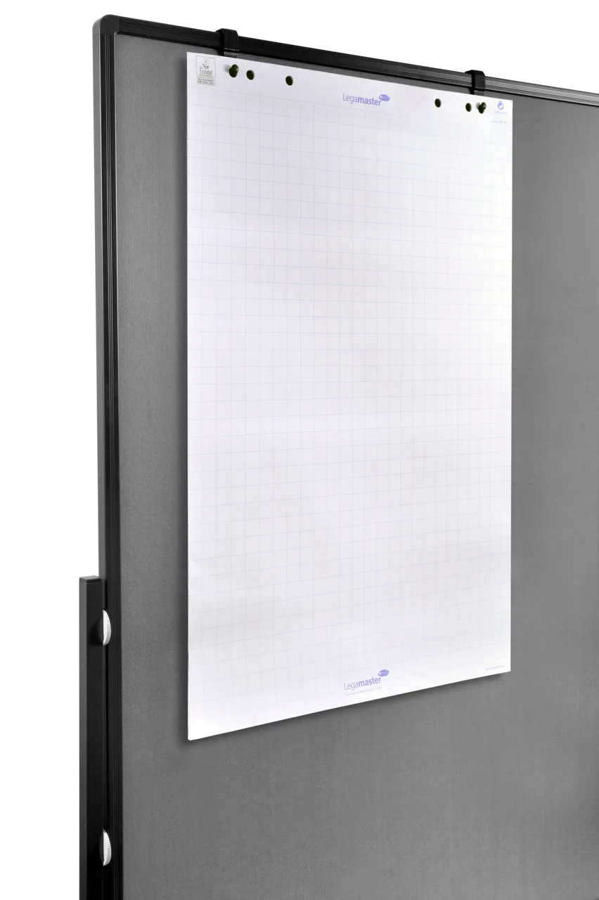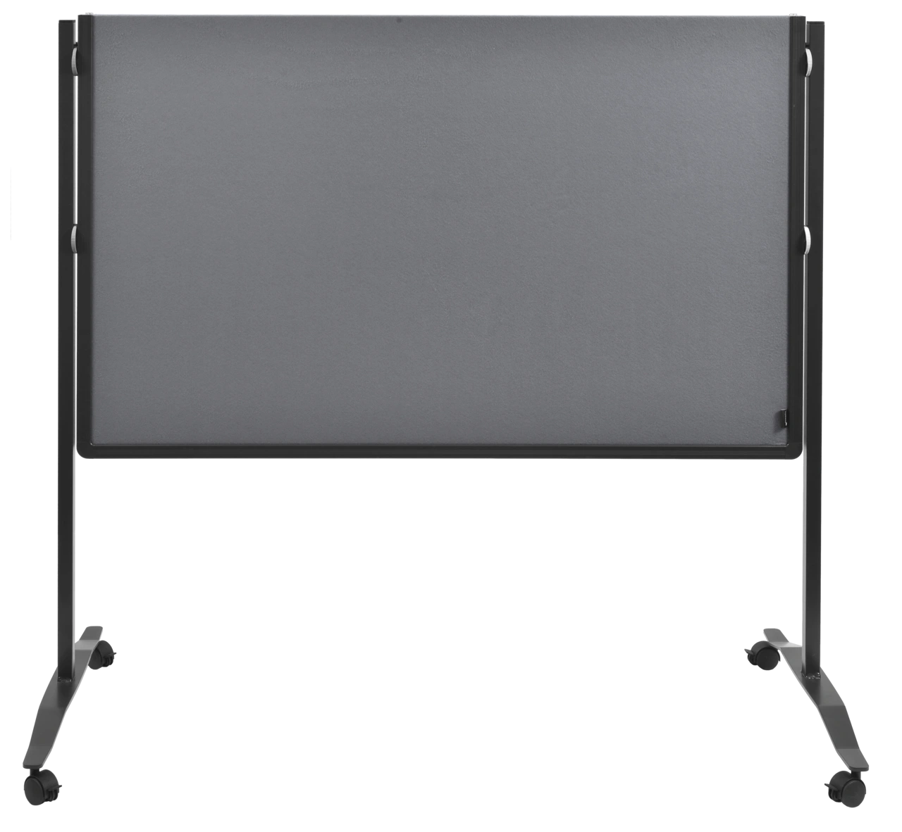 Oboustranná skládací tabule PREMIUM PLUS s šedým textilní povrchem. Jednoduchý stabilní design, lehká tabule, matně černý hliníkový rám. Mobilitu zajišťují 4 kolečka, z nichž je každé opatřeno brzdou pro větší stabilitu tabule. Složení je velice snadné a rychlé. Stojan je speciálně navržen tak, aby tabule mohly stát těsně u sebe i v případě natočení do různých úhlů. Velikost vlastní tabule je 150x120 cm, výška horní hrany je 196 cm v případě sestavení s tabulí na šířku nebo 226 cm v případě sestavení s tabulí na výšku. Hmotnosttabule včetně ránu je 9,5 kg.