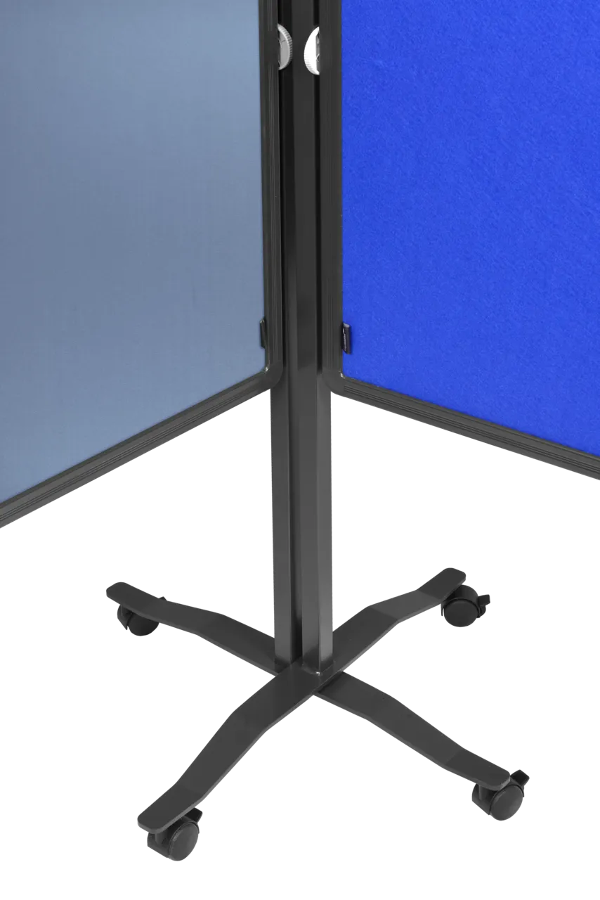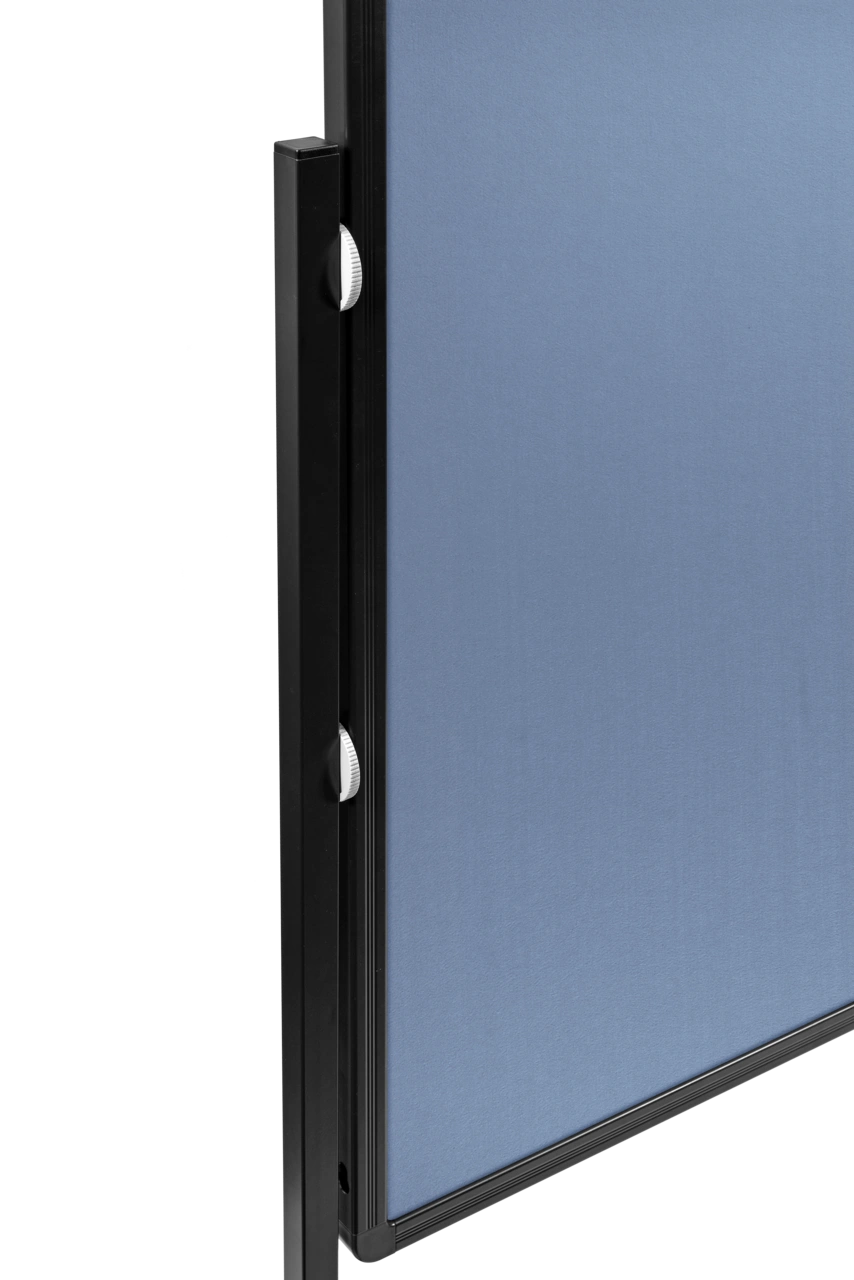 Moderní elegantní oboustranná mobilní skládací moderační tabule / paraván. Ideální pro prezentace, vystavení různýh dokumentů nebo pro efektivní týmovou práci. Povrch tabule je textilní. Dokumenty se na tabuli připevňují pomocí špendlíků.