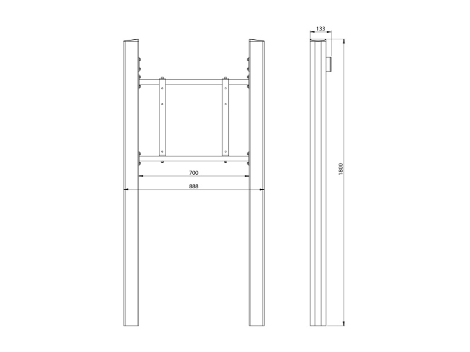 Stojan je speciálně navržen pro montáž na nenosnou stěnu, celá hmotnost spočívá na podlaze. Sloupy mají moderní trojúhelníkový design. Stojan je navržen pro dotykové displeje Legamaster e-Screen. Během instalace je možné nastavit výšku displeje.