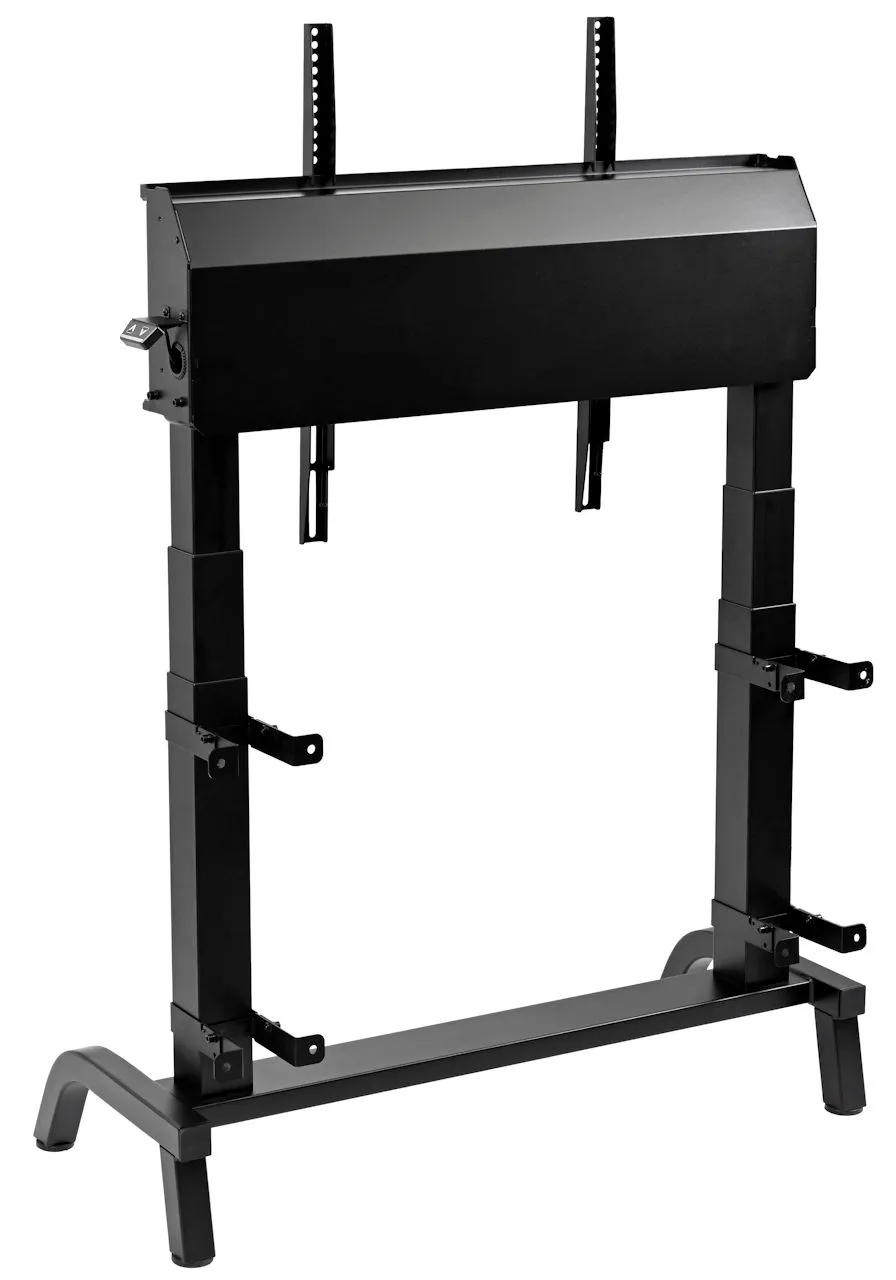 Sloupový systém MOTION EASY nabízí elektrické nastavení výšky v jednoduchém provedení bez podvozku, vhodné pro pevné instalace v učebnách a zasedačkách.