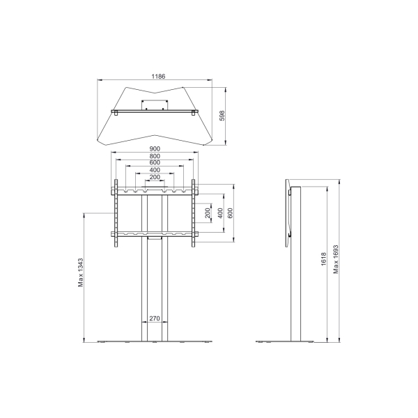 Moderní volně stojící stojan s VESA rozhraním (200x200 až 800x600) pro LCD displeje a příslušenství. Snadná montáž do 15 minut, výška 181 cm, vysoká stabilita díky extra velké základně a 8letá záruka.