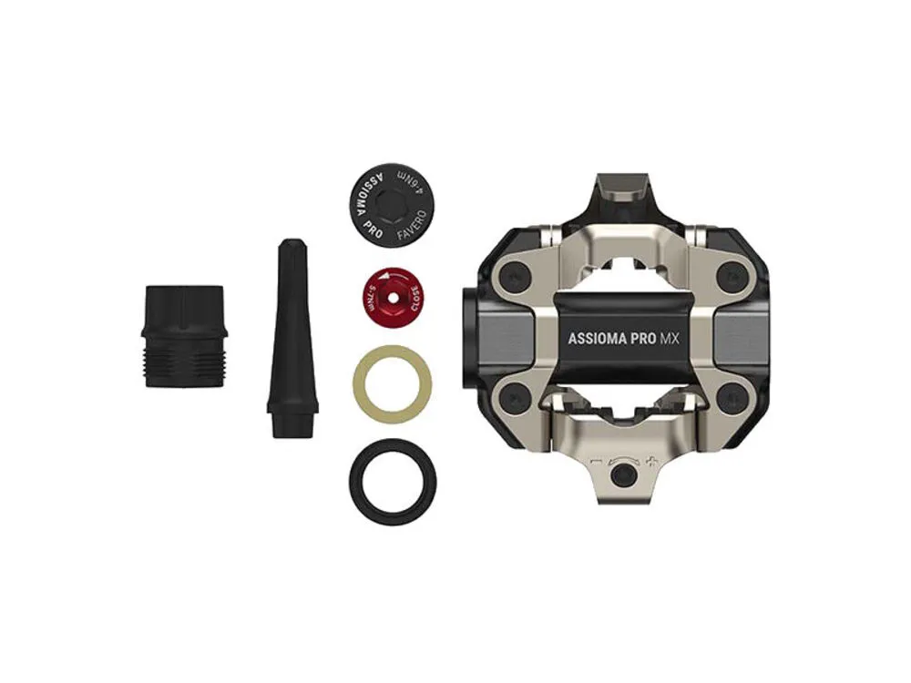 Pravostranné náhradní tělo pedálu Favero Assioma PRO MX je spolehlivý díl pro výměnu pravého pedálu. Součástí balení je pravé tělo pedálu, koncovka, černá šroubovací krytka, mazací těsnění, podložka na osu a mazací adaptér. Hmotnost dílu je 141 gramů.