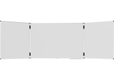 Třídílné tabule máme většinou spojené s dětstvím a povinnou školní docházkou, ale věřte, že svoje uplatnění mají i v kancelářích, podobných nebo stejných, ve které právě teď sedíte. Výhodou těchto tabulí s křídly je velká psací plocha a také možnost si něco předem připravit a ukázat až v tu pravou chvíli nebo naopak skrýt tajné informace před náhodným příchozím.