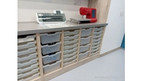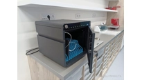 Protože studenti využívají při výuce a programování robotů tablety je zde také nabíjecí skříň na tablety s vestavěnou UV lampou pro desinfekci tabletů před dalším použitím.