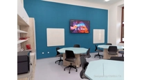 Zveme Vás k prohlídce jednoho z našich nejnovějších projektů "učebna snů", který jsme navrhli a nakonec také úspěšně realizovali pro Vyšší odbornou školu pedagogickou a sociální a Střední pedagogickou školu Kroměříž. Prvotním požadavkem investora byla přestavba nevyhovujících prostor na "učebnu snů", která bude sloužit jako multifunkční počítačová, jazyková, robotická a kreativní učebna nebo jako učebna pro speciální předměty. Projekt začal zpracováním studie včetně vizualizace, na kterou se můžete podívat v sekci 3D vizualizace a návrhy interiéru > Vizualizace multifunkční počítačové učebny.