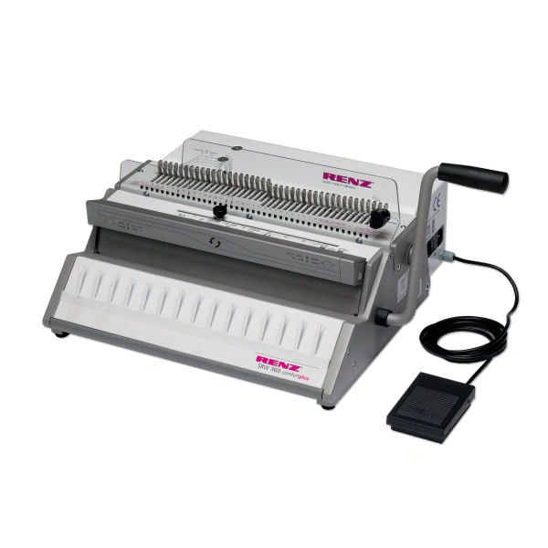 Vazač Renz SRW 360 Comfort Plus je spolehlivý a výkonný vazač pro vaše kancelářské potřeby. Tento robustní stroj s elektrickým pohonem je navržen pro intenzivní používání a zvládne bez problémů svazky až do 130 listů papíru (80 g/m2).