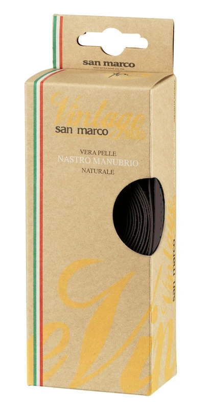 VINTAGE LEATHER TAPE je hnědá kožená omotávka na řídítka ladící se sedly San Marco Vintage 1935. Dodá tvému kolu stylový retro vzhled, je odolná a příjemná na dotek. Ideální volba pro ty, kdo chtějí kvalitní provedení s nádechem elegance.