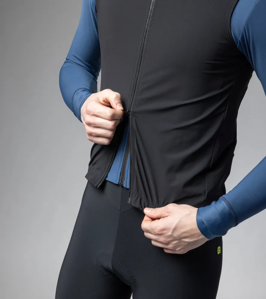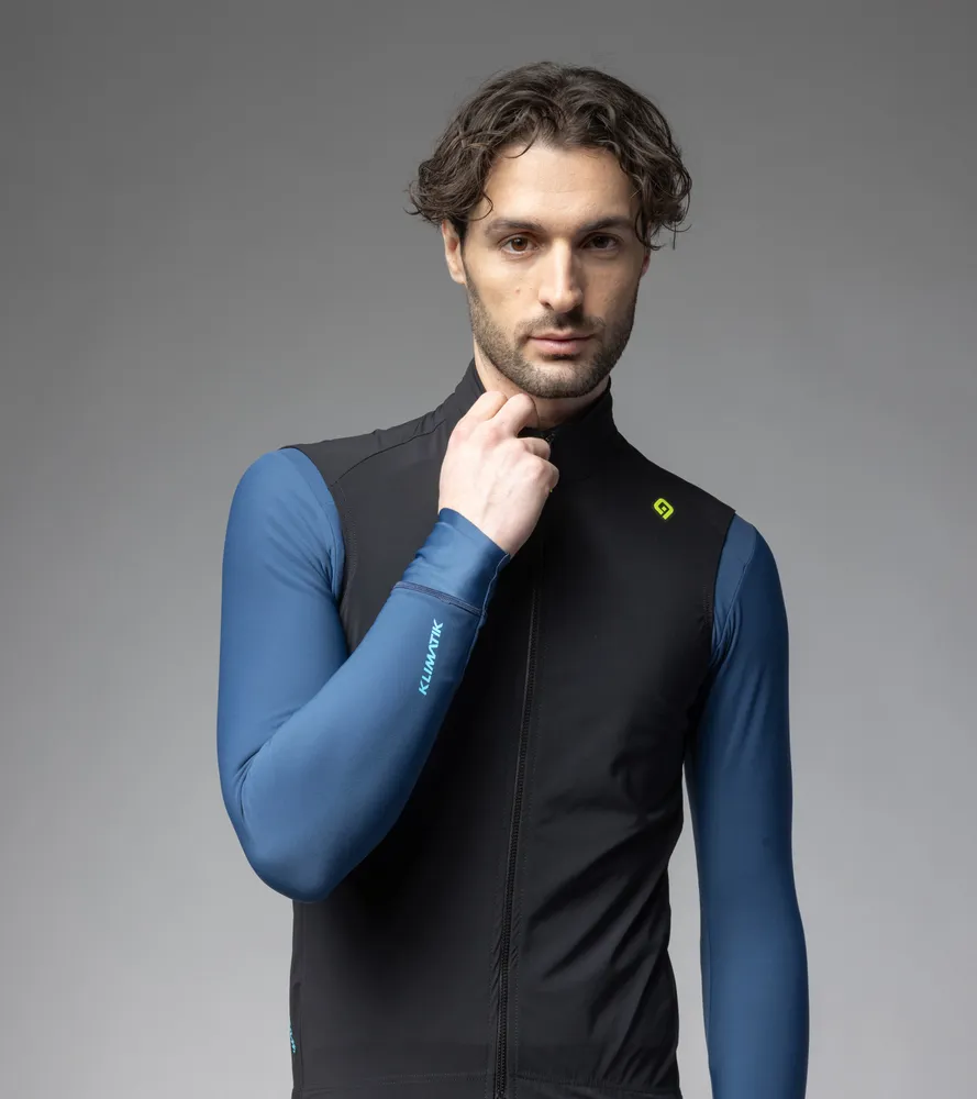 Voděodolná pánská cyklistická vesta ALÉ K-SOLUTION v závodním střihu je lehká, pružná a skvěle přiléhá k tělu. Materiál Klima Hidro-Light 2L s membránou a DWR úpravou spolu s utěsněnými švy a vodotěsným zipem spolehlivě chrání před deštěm i stříkající vodou, přitom zůstává prodyšná. Díky vysoké skladnosti je vhodná jako celoroční pojistka do kapsy.