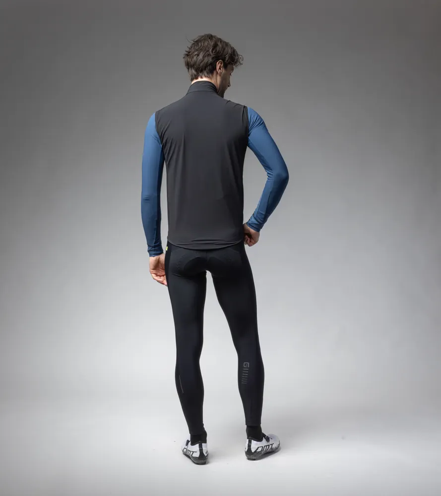 Voděodolná pánská cyklistická vesta ALÉ K-SOLUTION v závodním střihu je lehká, pružná a skvěle přiléhá k tělu. Materiál Klima Hidro-Light 2L s membránou a DWR úpravou spolu s utěsněnými švy a vodotěsným zipem spolehlivě chrání před deštěm i stříkající vodou, přitom zůstává prodyšná. Díky vysoké skladnosti je vhodná jako celoroční pojistka do kapsy.