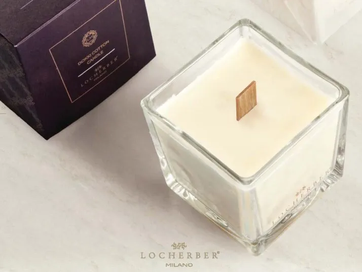 Svíčky Locherber Milano jsou tvořeny prémiovými vosky (směs přírodního minerálního a karnaubského vosku). A jsou uložené v elegantní skleněné dóze s dřevěným víčkem. Víčko plní nejen estetickou ale i praktickou funkci. Pokud svíčka není právě zapálená, nepráší se do ní a stále vypadá velmi elegantně (i když je z části vyhořelá). Dřevěné víčko je z pravého ořechového dřeva.