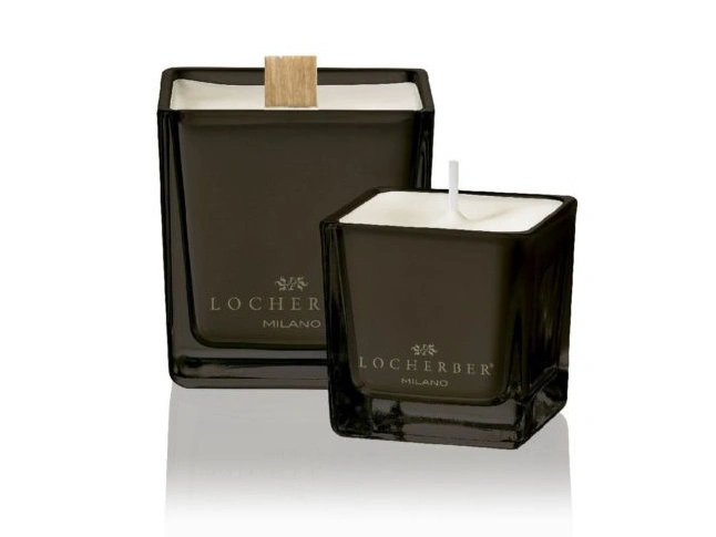 Svíčky Locherber Milano jsou tvořeny prémiovými vosky (směs přírodního minerálního a karnaubského vosku). A jsou uložené v elegantní skleněné dóze s dřevěným víčkem. Víčko plní nejen estetickou ale i praktickou funkci. Pokud svíčka není právě zapálená, nepráší se do ní a stále vypadá velmi elegantně (i když je z části vyhořelá). Dřevěné víčko je z pravého ořechového dřeva.