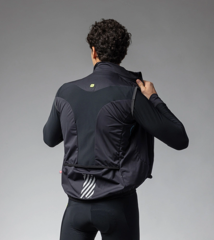 Pánská zimní či podzimní cyklistická vesta ALÉ KLIMATIK K-SMART je vhodná jako další vrstva izolující od větru a chladu. Díky speciální látce PrimaLoft je vesta větruodolná a zároveň je schopna odvádět přebytečnou vlhkost (6000 GRM2/24H). Díky tomu je vesta ideální pro zahřátí, kdy potřebujete zůstat v suchu i za studeného počasí. Vodní sloupec 10000 MM/H2O ochrání také před deštěm.