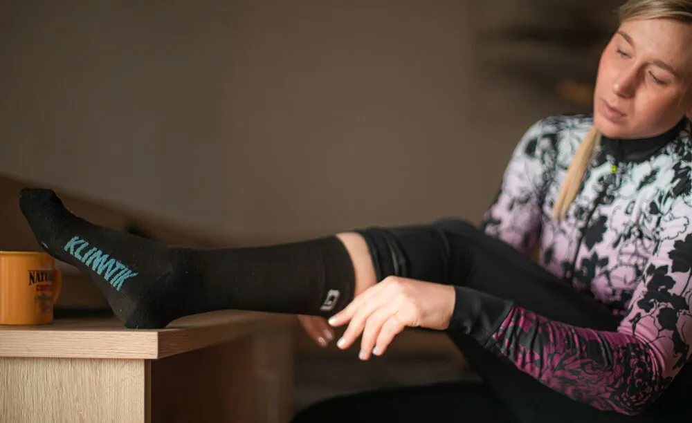 Zimní ponožky ALÉ Klimatik z vláken Polipropilene Thermo jsou navržené pro vysokou tepelnou izolaci a komfort při jízdě v chladu. Materiál pomáhá omezovat zápach a zároveň odpuzuje vodu, takže noha zůstává sušší i při náročném výkonu.
